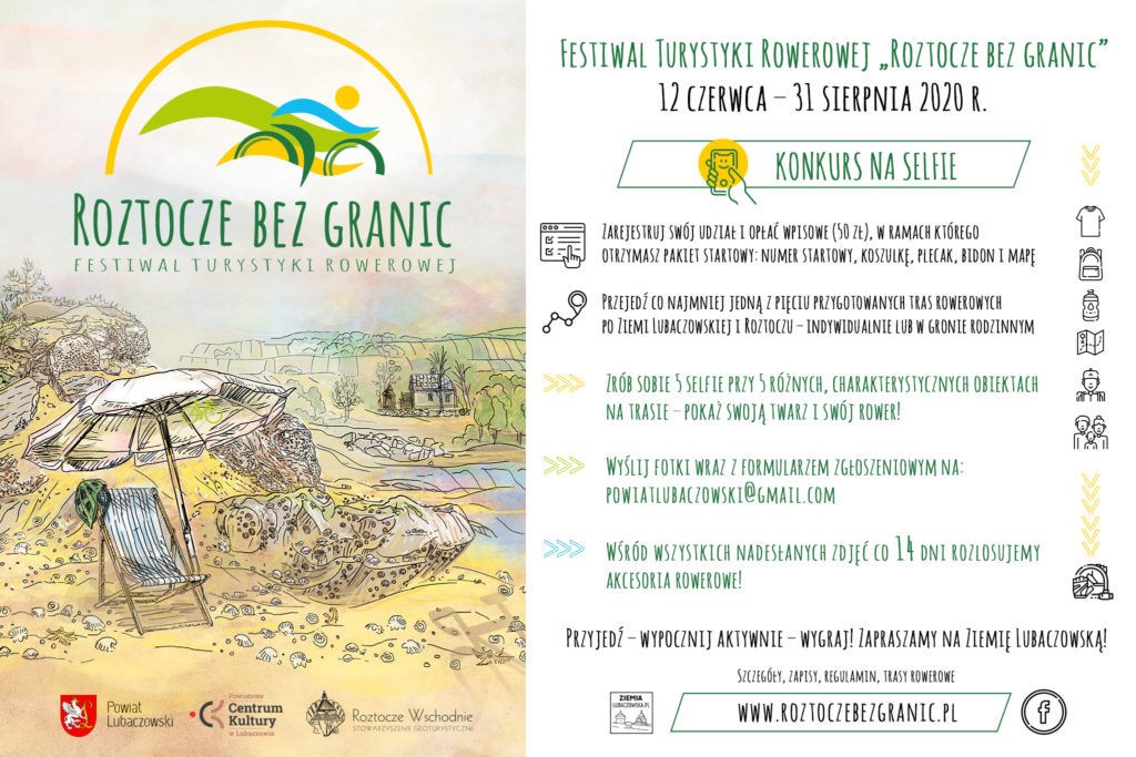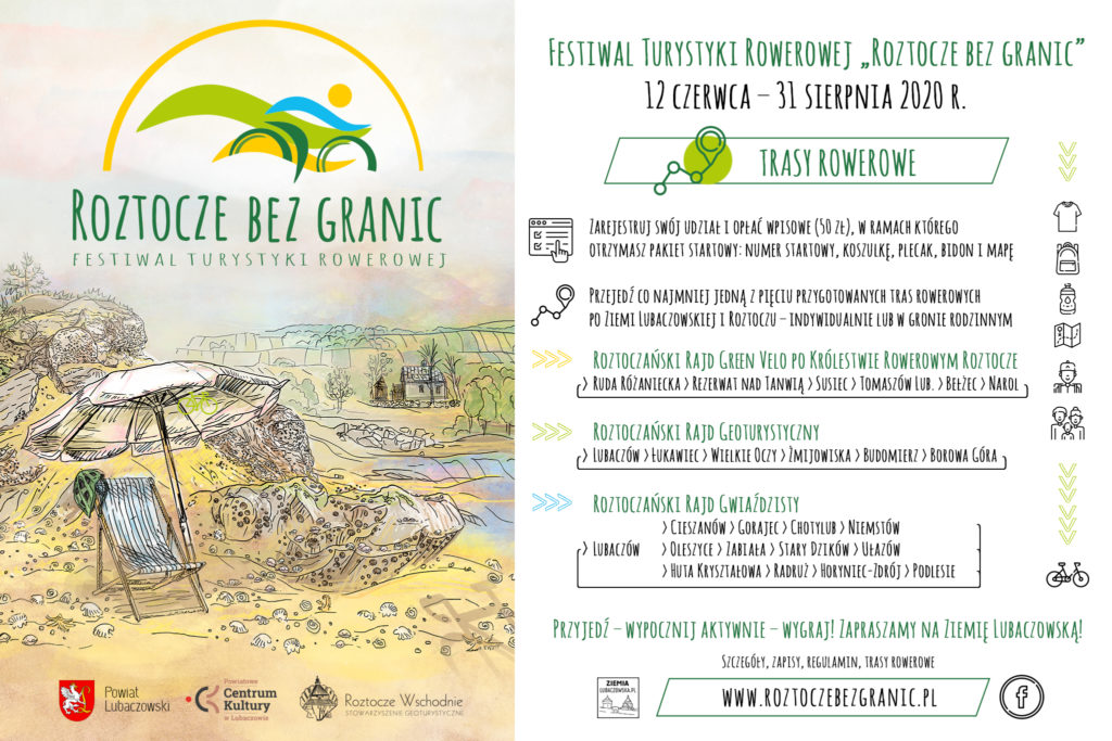 Sytuacja epidemiczna nie pozwala na zorganizowanie Festiwalu Turystyki Rowerowej „Roztocze bez granic” w formie dotychczas zapowiadanej, niemniej jednak Festiwal rozpocznie się w planowanym terminie, czyli 12. czerwca, ale w ZUPEŁNIE NOWEJ FORMULE, i potrwa aż do 31. sierpnia 2020 r.!